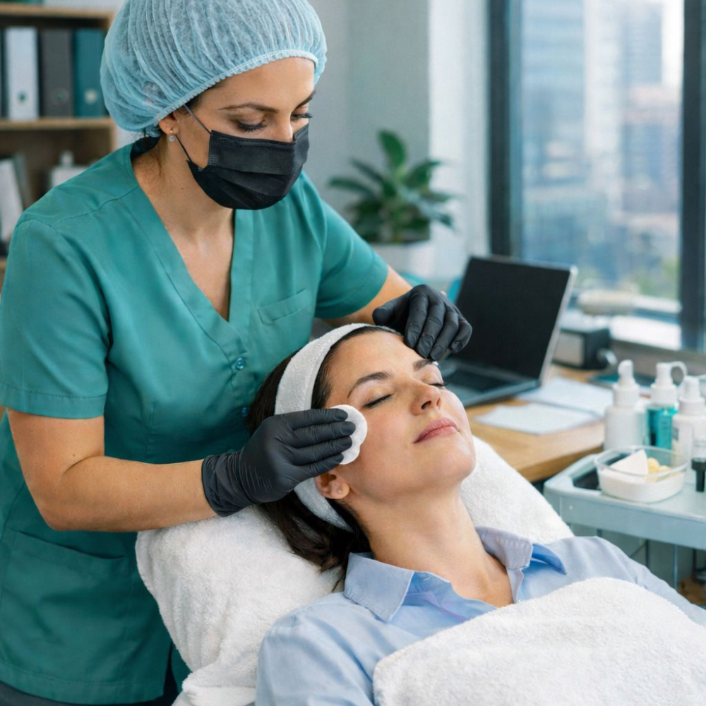Cuidado facial rápido y efectivo que revitaliza la piel, mejora la apariencia y entrega una sensación inmediata de frescura y bienestar durante la jornada laboral.